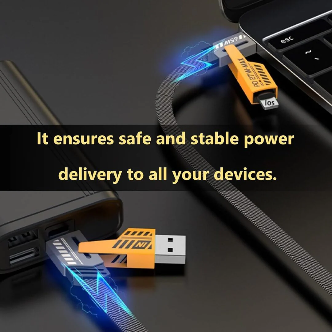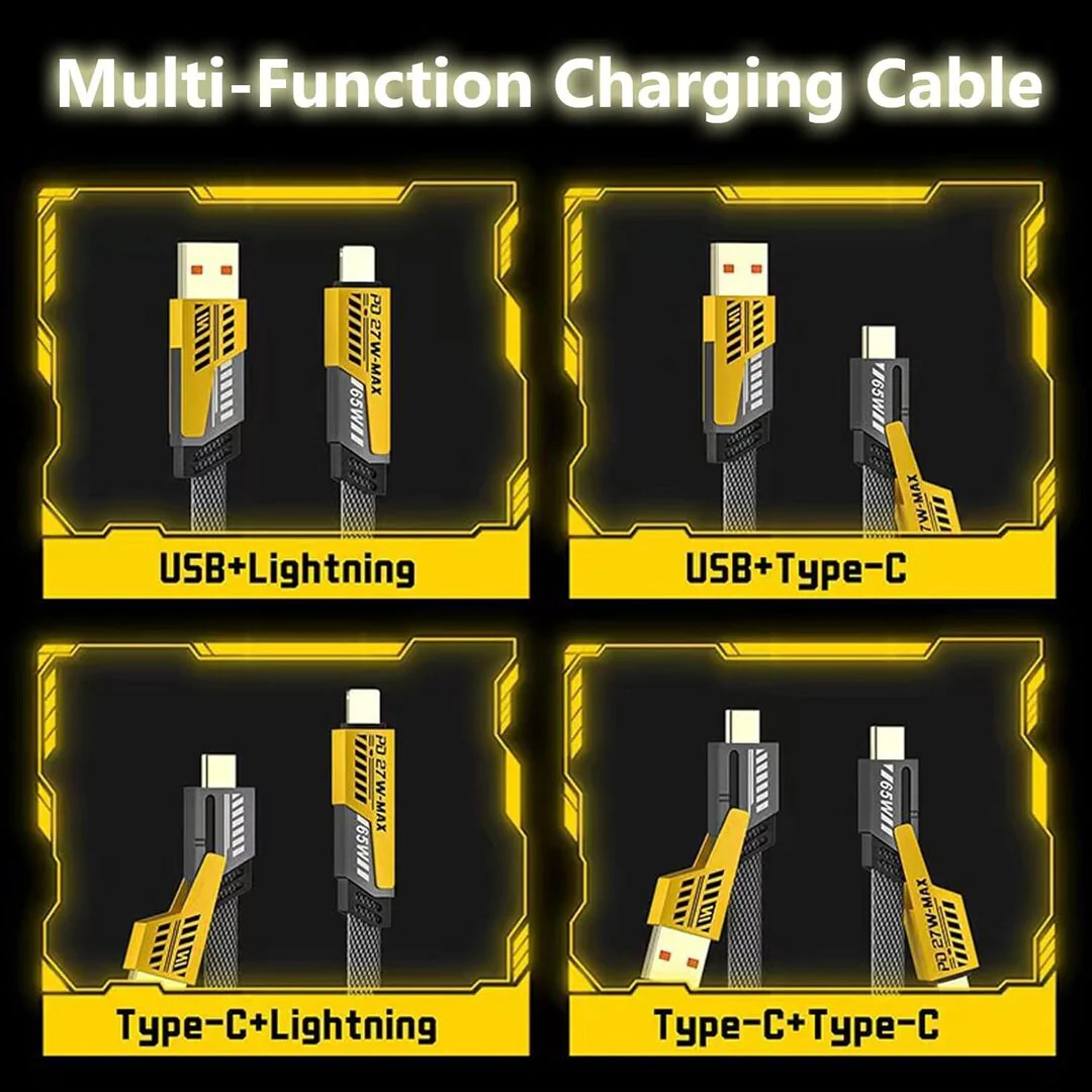 1 Pc Universal 65W/27W 4-in-1 Charging Data Transfer Cable In Premium Quality