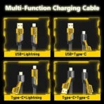 - Universal Compatibility: This charging cable seamlessly charges and syncs multiple devices with USB-C to USB-C, USB-A to Lightning, USB-C to Lightning, and USB-A to USB-C connectors, supporting a wide range of smartphones, tablets, and laptops. It’s compatible with the iPhone 15 series, delivering up to 50% battery in just 30 minutes. (Note: Actual charging speed depends on your device and wall charger.)