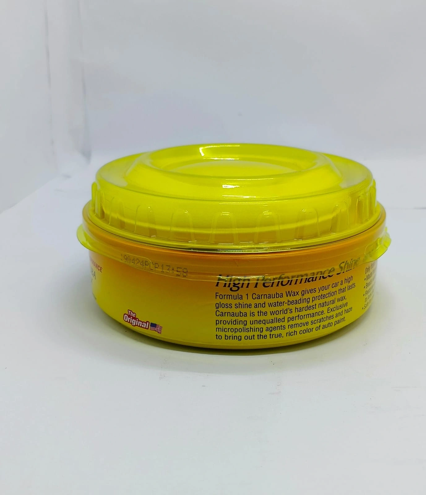Formula 1 carnauba wax gives your car a high gloss shine and water beading protection that lasts.