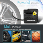 Multi-purpose: The Steelmate tire pump comes with 3 different tips, which makes it perfect for cars, SUVs, bikes, small trucks, and so on. Also, sports equipment and other inflatables.